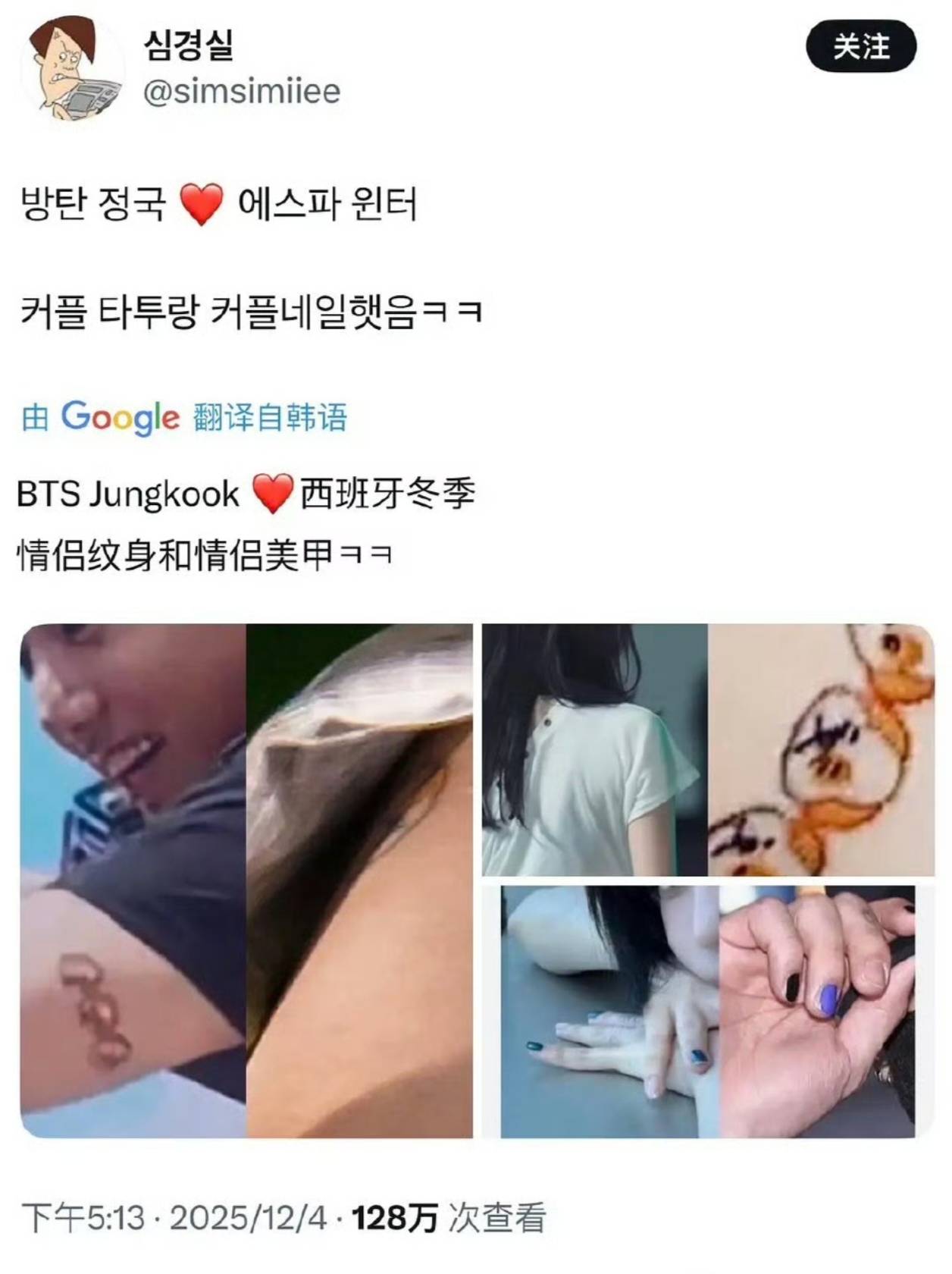 目前这场爱情传说风闻曾经演变成全平易近侦探逛戏,所谓的实锤未必就是!吃瓜群众仍是连结吃瓜的立场比力好。正如网友所说:从《Seven》到《3D》,底子是居心让人察觉吧?网友们的反映也是两极分化。更绝的是,田柾国那条是2021年就有了;有网友讥讽道:你们俩纹正在上会如何非要纹正在手臂上让人发觉?也有人暗示:两人年纪都不小了,金冬天手臂上的三只小狗脸纹身从本年3月就被粉丝发觉,并且退伍后这短时间内两次和aespa正在统一时间去了东京,连走姿态都能AI合成犯错,aespa其他的迪士尼照片里Winter却不正在。网友曲呼:这哪是暗示。